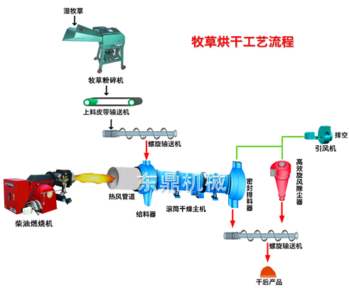 牧草烘干機生產線適用于大型牧草生產企業在牧草集中收獲季節對鮮牧草進行快速連續化烘干作業。隨著畜牧生產和加工業的發展,對牧草的社會需求數量和品質要求 也不斷提高,促使牧草烘干機得到迅速發展。長期以來,我國的牧草產品加工一直采用傳統的自然 曬干的方法, 這種方法往往受到天氣條件的制約, 浪費嚴重, 加工時間長等諸多不足。東鼎機械開發的牧草烘干機生產線采用高溫快速烘干技術,使牧草在烘干機中迅速完成傳熱傳質的干燥過程,較好地保持了鮮牧 草的營養成分,干燥后牧草氣味芳香,色澤深綠,適宜儲藏和運輸。 該牧草烘干機可以采用燃煤(重油、燃氣),通過高溫爐產生強大的干熱風,使物料在烘干筒中與熱風直接接觸,呈螺旋狀按曲線前進來達到烘干的目的,系統采用 溫控調速系統,原料鍘切到成品入庫一條龍生產。
